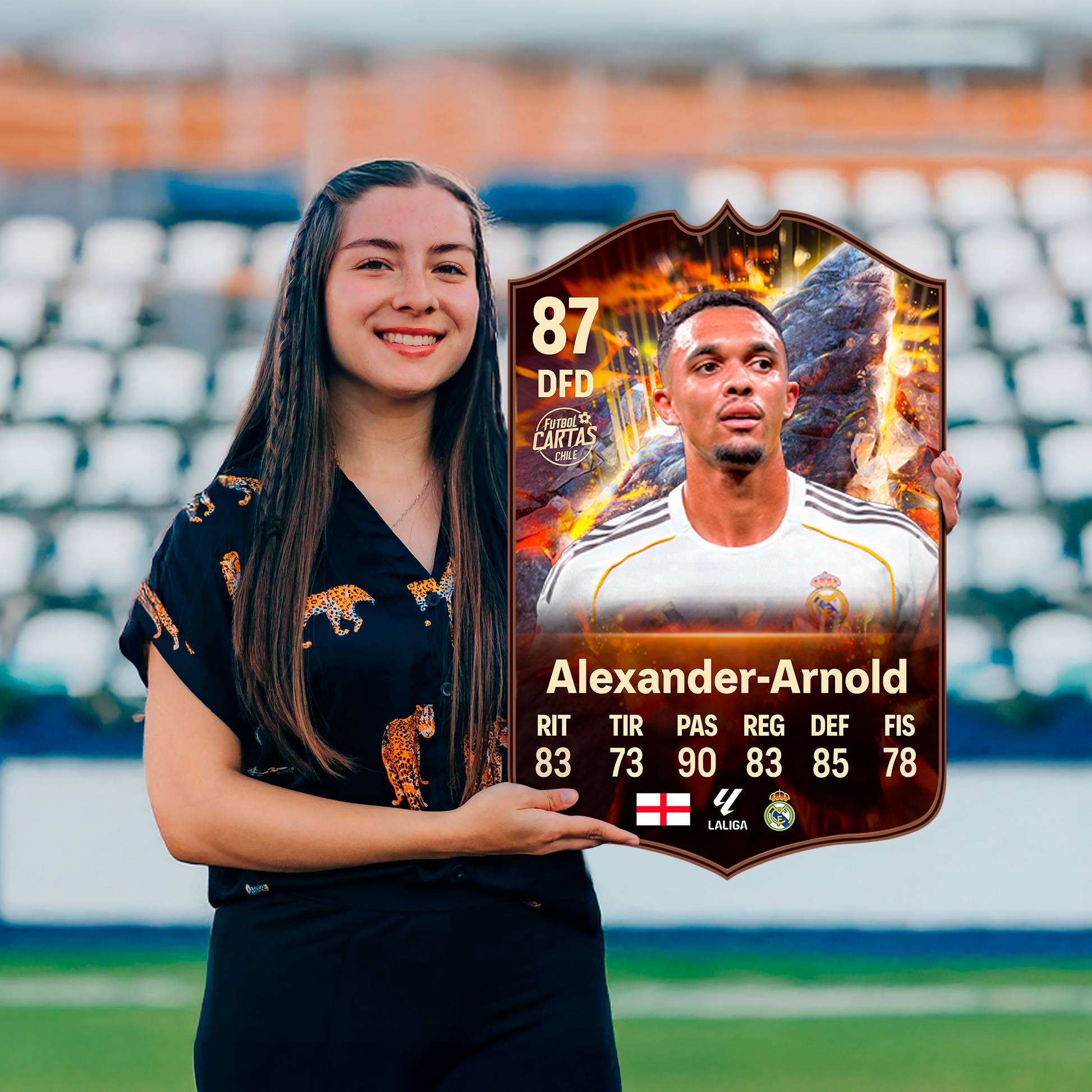Llévate la carta de Alexander Arnold CORNERSTONES FC26 en tamaño real. Producto inspirado en su versión especial CORNERSTONES de Ultimate Team en FC 26, pensado para fans del fútbol y de Alexander Arnold que quieren transformar su carta del juego en un recuerdo físico en tamaño real. Perfecta como regalo futbolero o para decorar tu pieza, gaming room o espacio de colección.