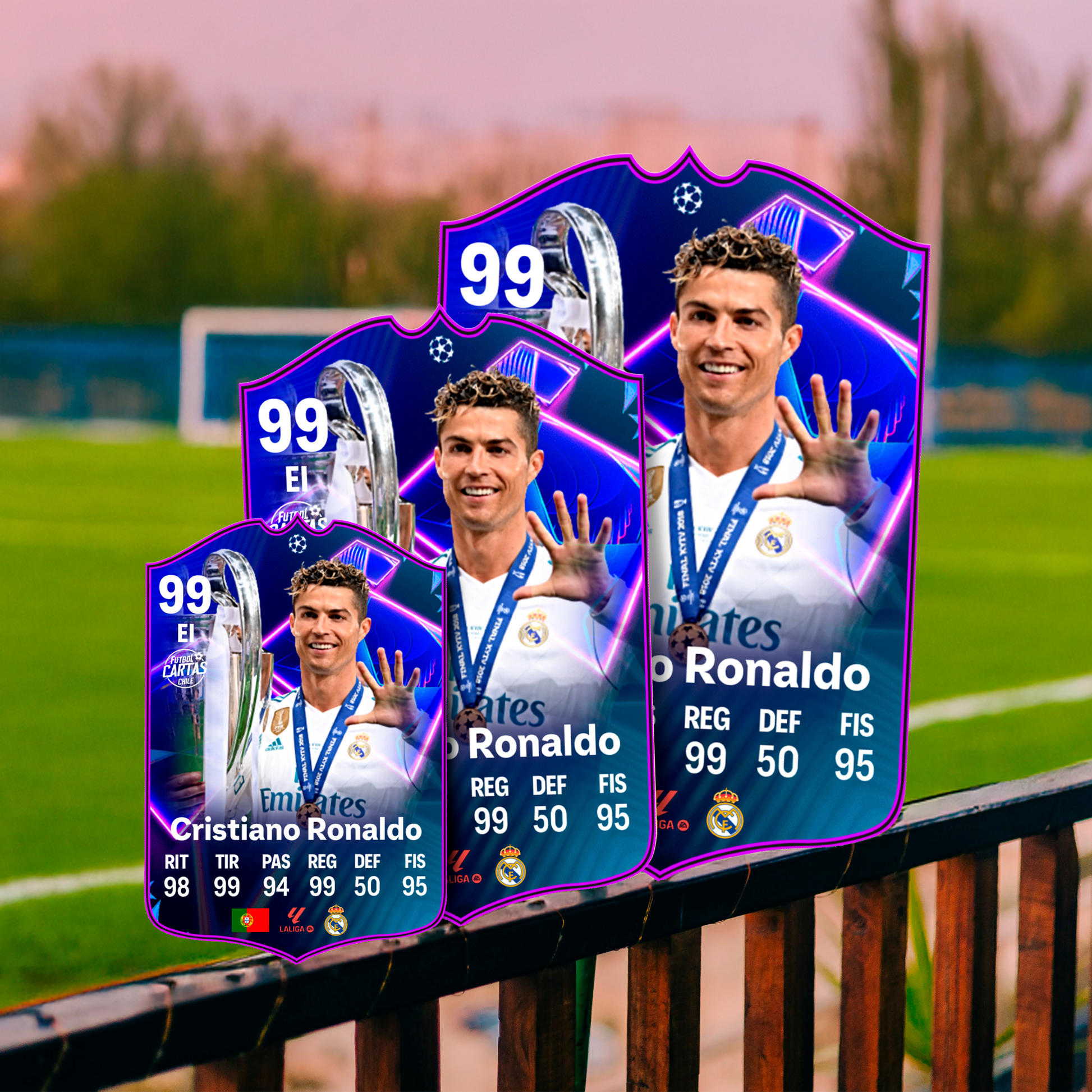 Llévate la carta de Cristiano Ronaldo UCL Dreamchasers FC25 en tamaño real. Es un diseño original de Futbol Cartas Chile, inspirado en el estilo de las cartas especiales de los videojuegos de fútbol. Ideal para fans de Cristiano Ronaldo y coleccionistas que quieren llevar su pasión por el fútbol a la vida real con una carta en gran formato. Perfecta como regalo futbolero o para decorar tu pieza, gaming room o espacio de colección.
