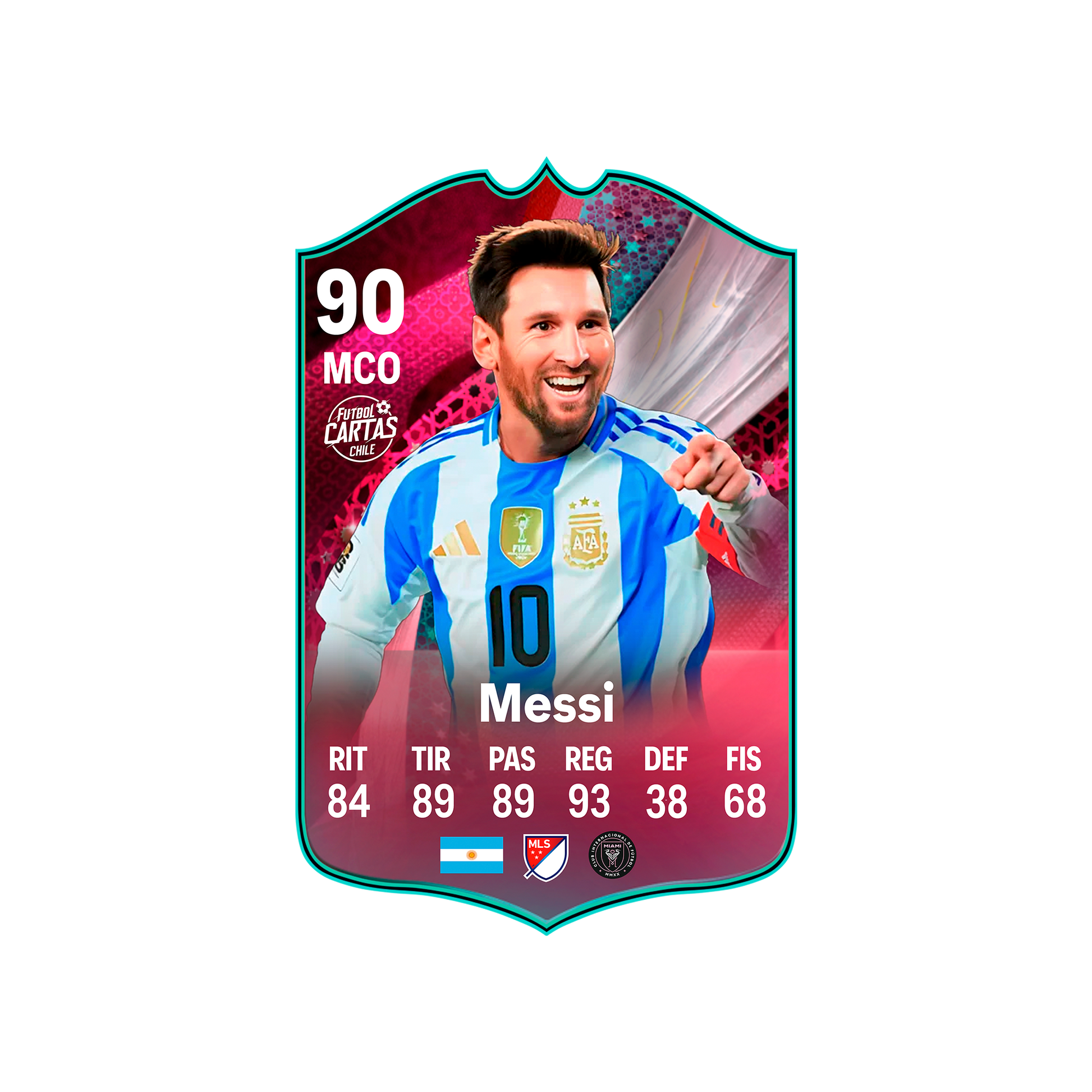 Llévate la carta de Messi CAPTAINS FC26 en tamaño real. Es un diseño original de Futbol Cartas Chile, inspirado en el estilo de las cartas especiales de los videojuegos de fútbol. Ideal para fans de Messi y coleccionistas que quieren llevar su pasión por el fútbol a la vida real con una carta en gran formato. Perfecta como regalo futbolero o para decorar tu pieza, gaming room o espacio de colección.