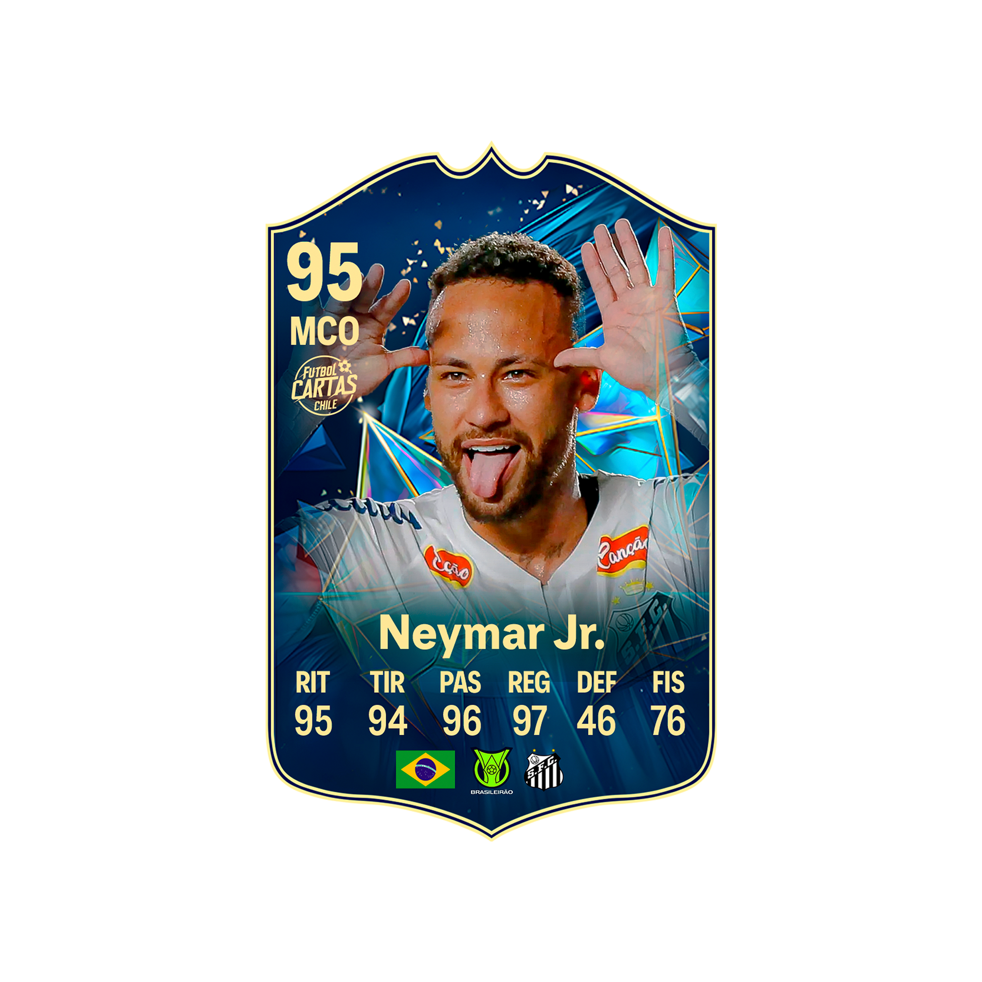 Llévate la carta de Neymar Jr TOTS FC25 en tamaño real. Es un diseño original de Futbol Cartas Chile, inspirado en el estilo de las cartas especiales de los videojuegos de fútbol. Ideal para fans de Neymar Jr y coleccionistas que quieren llevar su pasión por el fútbol a la vida real con una carta en gran formato. Perfecta como regalo futbolero o para decorar tu pieza, gaming room o espacio de colección.