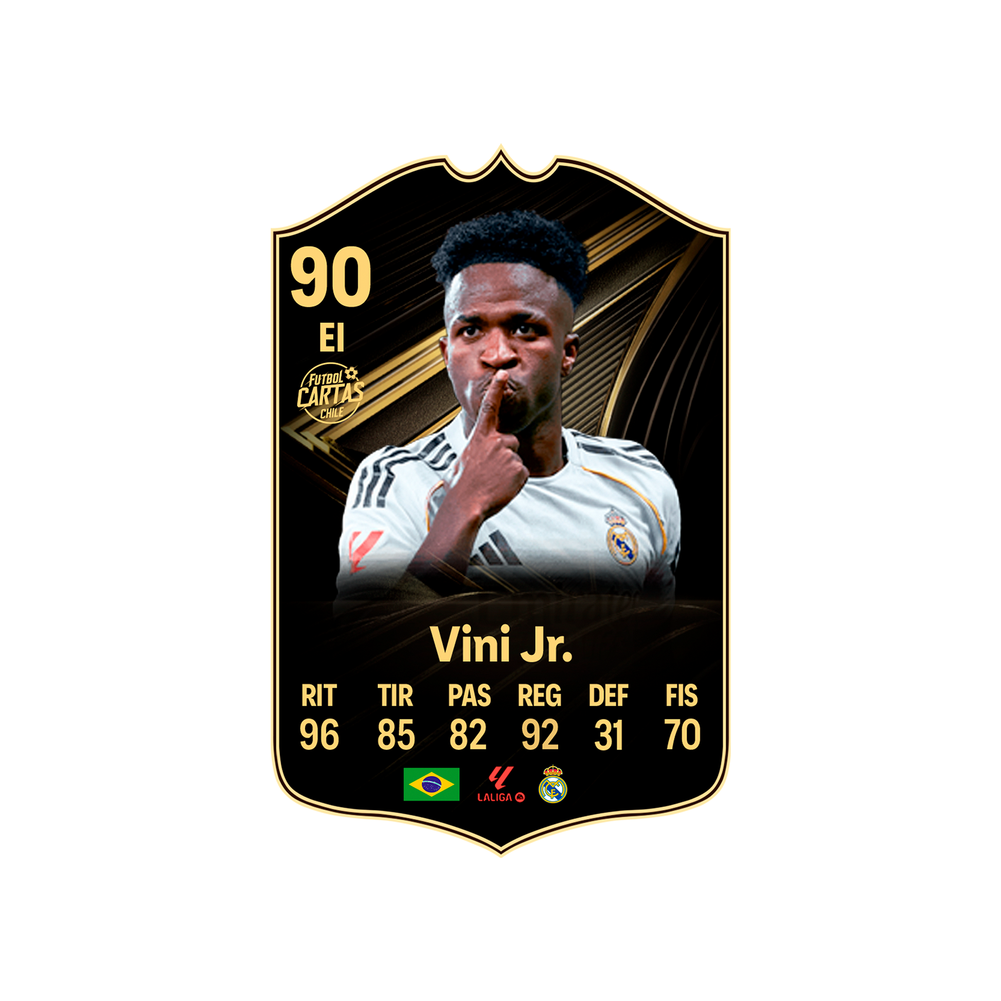 Carta oficial de Vinicius Jr TOTW FC 26, inspirada en su carta Team of the Week de Ultimate Team. Una pieza de colección perfecta para fans de Vini Jr, del fútbol ofensivo y de las cartas especiales de EA Sports FC.
